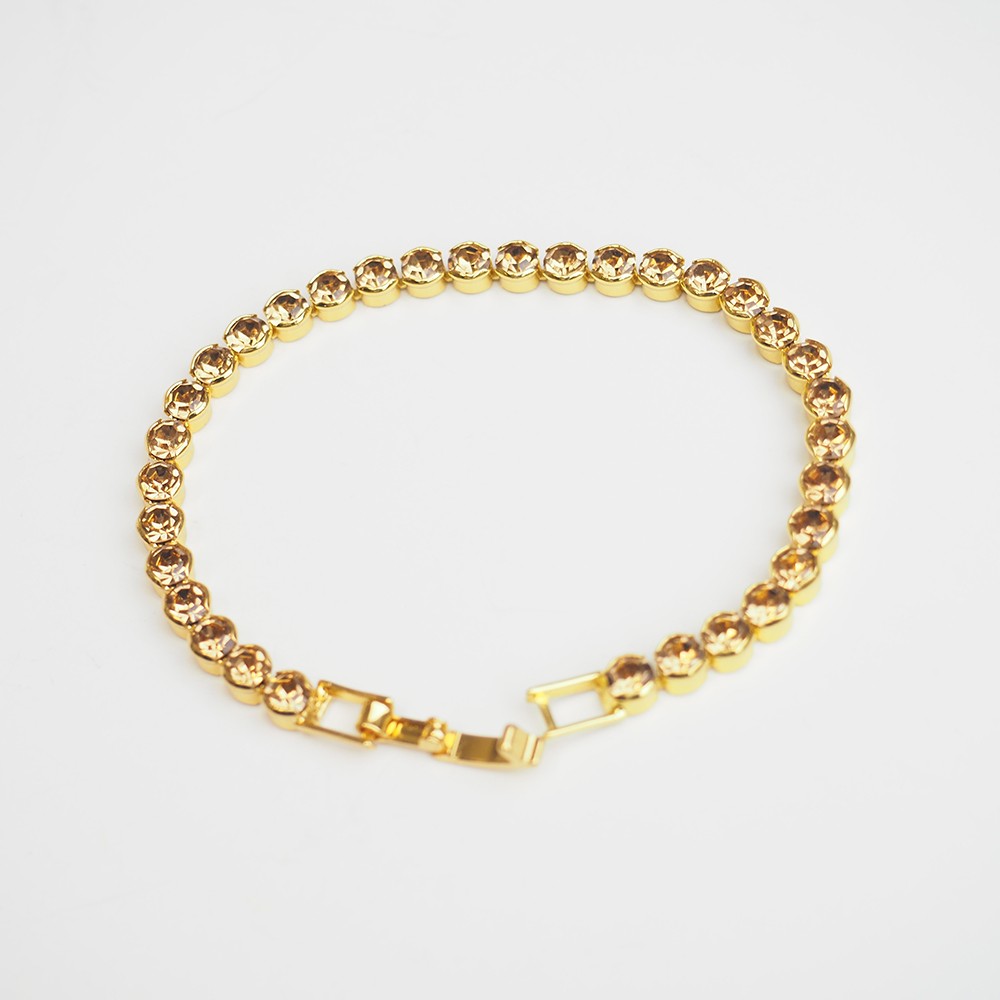 Light Peach Tennis Crystal Bracelet with Brass in Gold Plating
