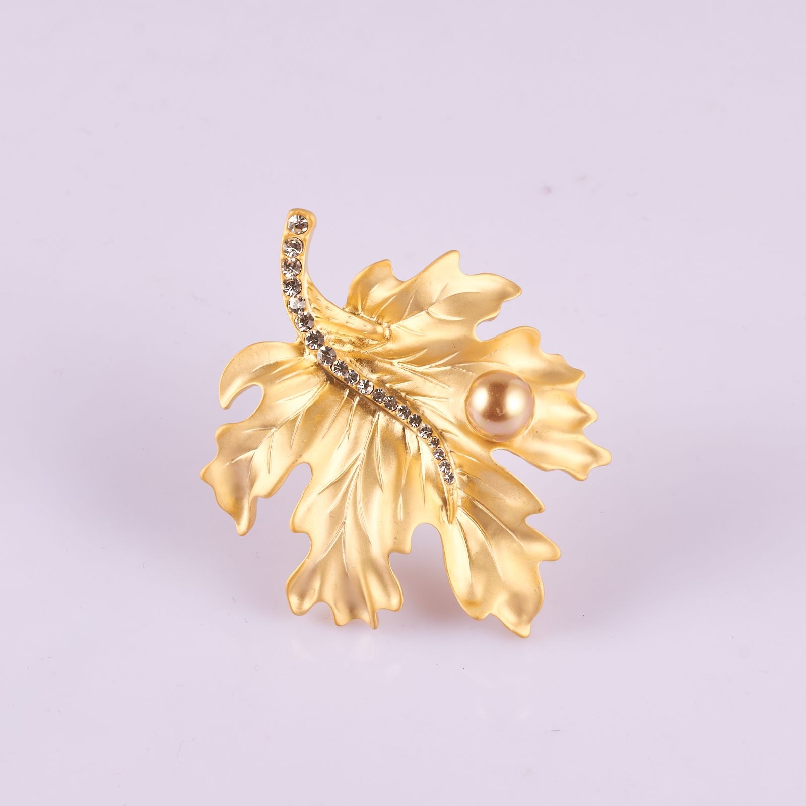 Leaf Cubic Zirconia Brooch with cream pearl