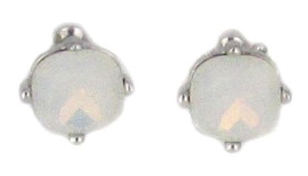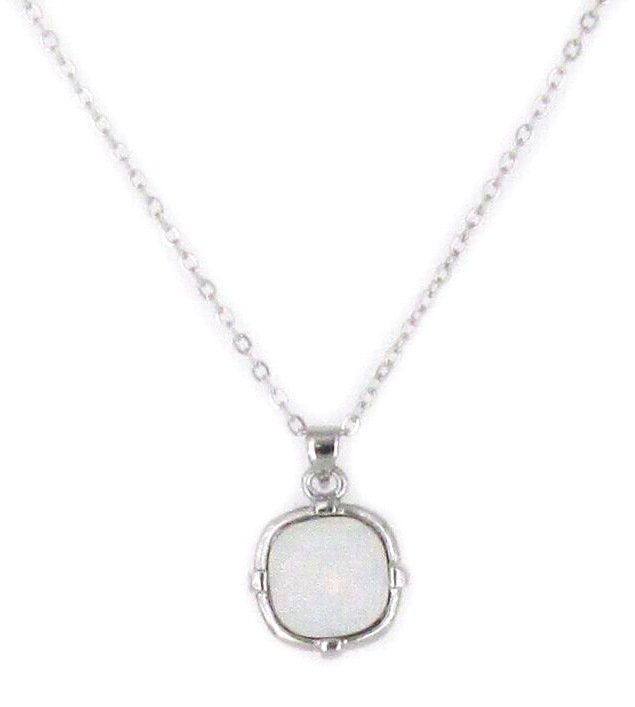 Square Birthstone White Opal Necklace In Rhodium Plating